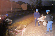 地域の環境を美しく保つことは、社会人としてのマナーです。ヤクシン開発では、仕事に対する責任感と、地域環境への貢献のため、従業員総出で自社処分場周辺の清掃を定期的(毎週)に行っています。