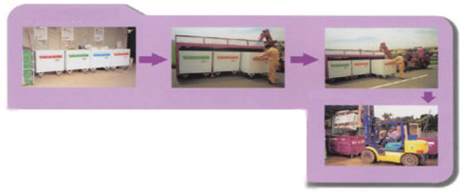 建設工事現場からでる廃材にはさまざまな物があります。それらの廃材を速やかに適正処理できるように、各現場に応じたコンテナを備えつけます。