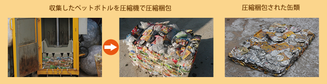 廃プラスチック内の異物除去作業及び圧縮梱包